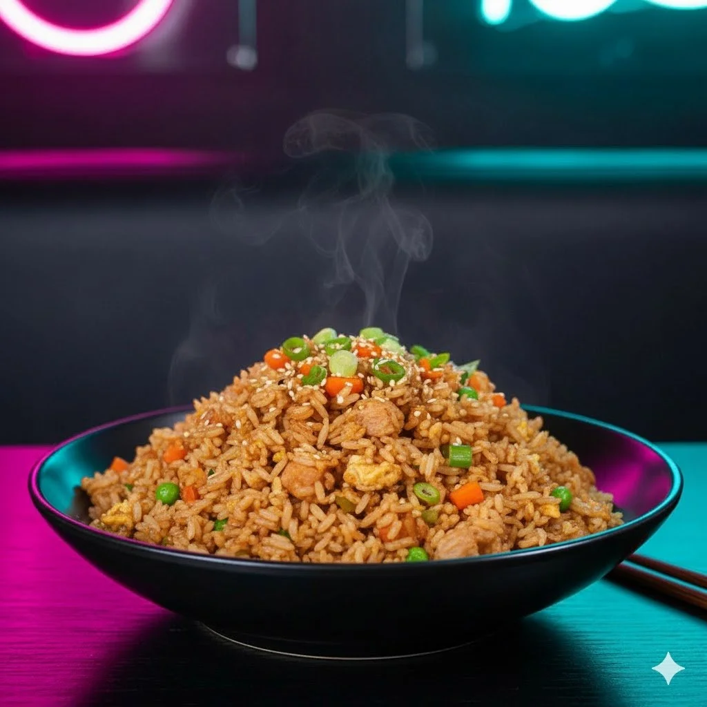 Fluffy rice gets intimate with egg, crisp bean sprouts, and a medley of onions, peas, and carrots. We finish the performance by drenching it all in our sultry sesame sweet soy glaze. It hits all the right spots