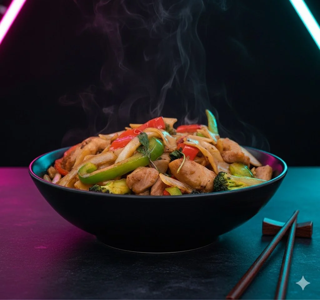 Crisp and vibrant green/red peppers, sweet yellow onions, fragrant garlic and ginger, all draped in a rich brown sauce. A classic with a touch of VIP treatment.